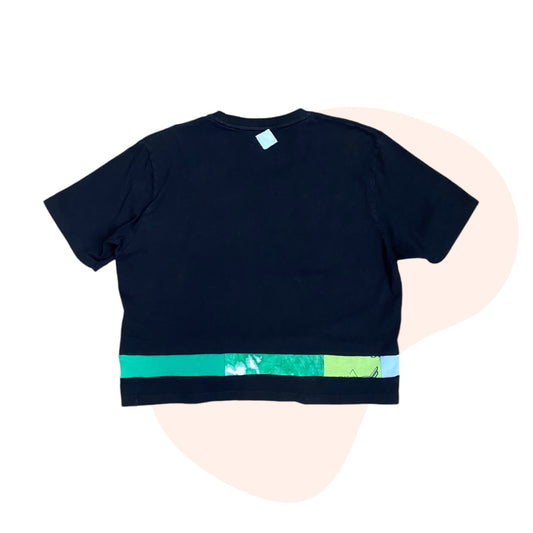 Patchwork Top #40 - Black / Green - Size M