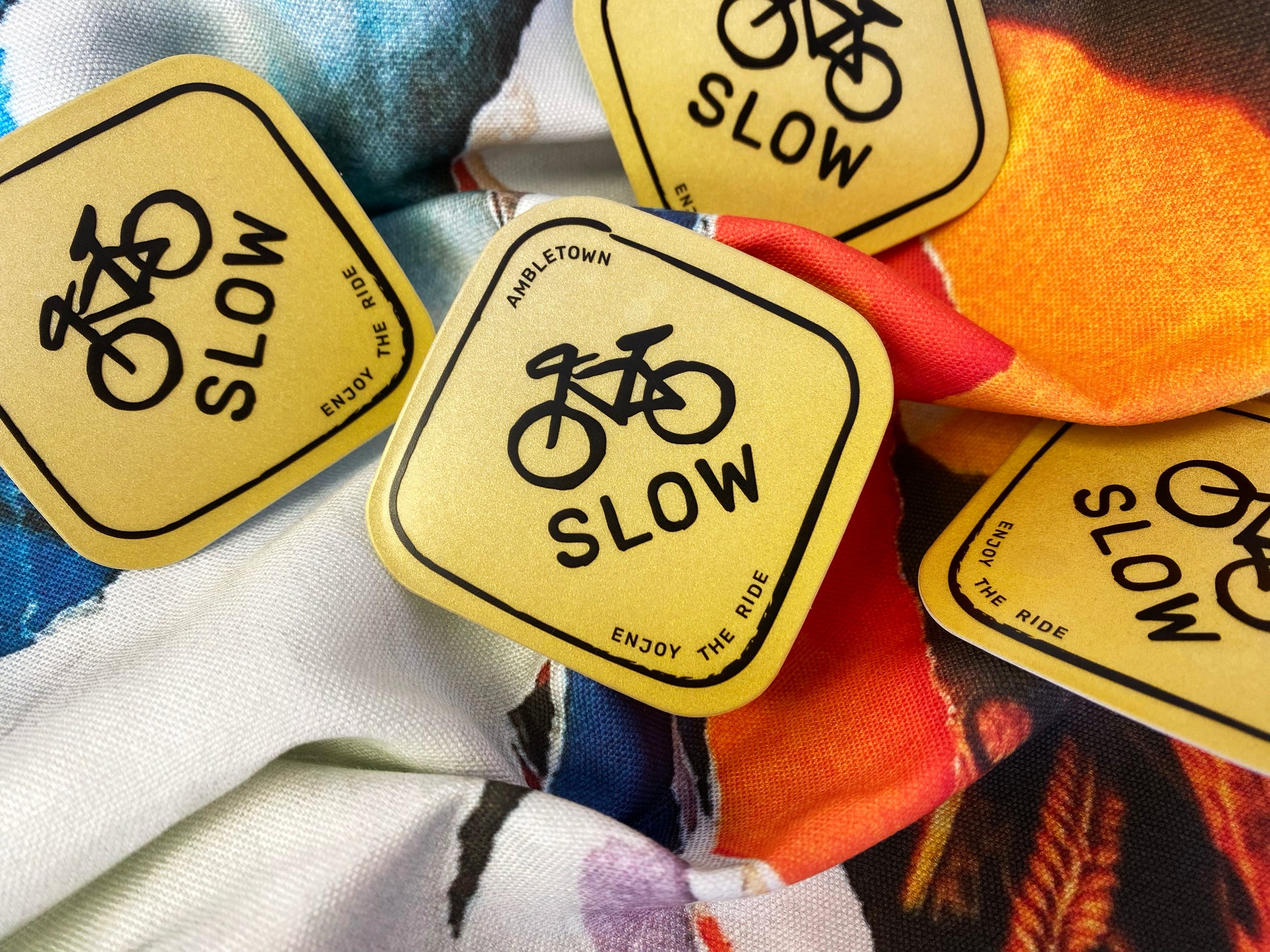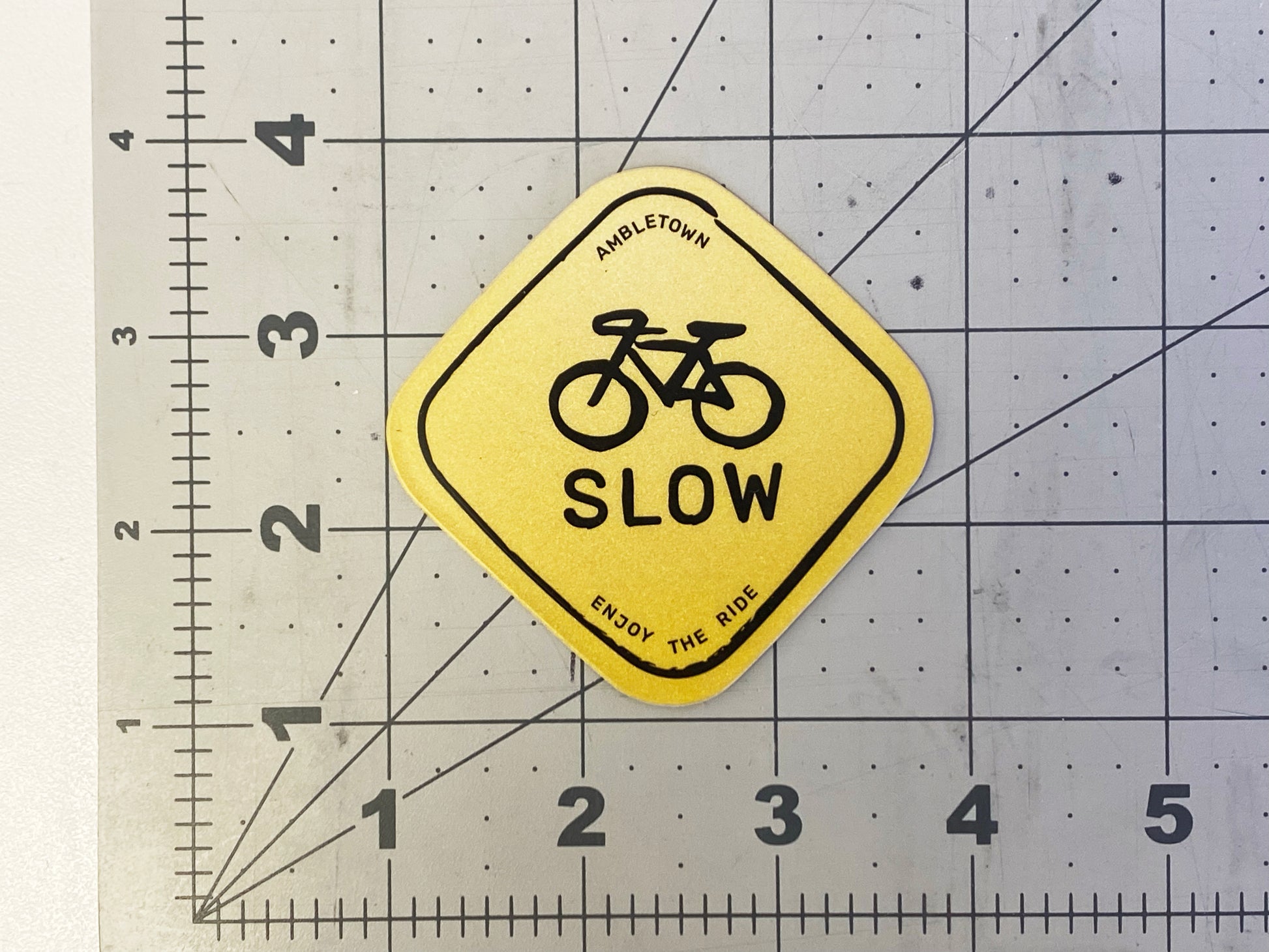 Slow down and enjoy the ride with this fun, high-vis sticker.