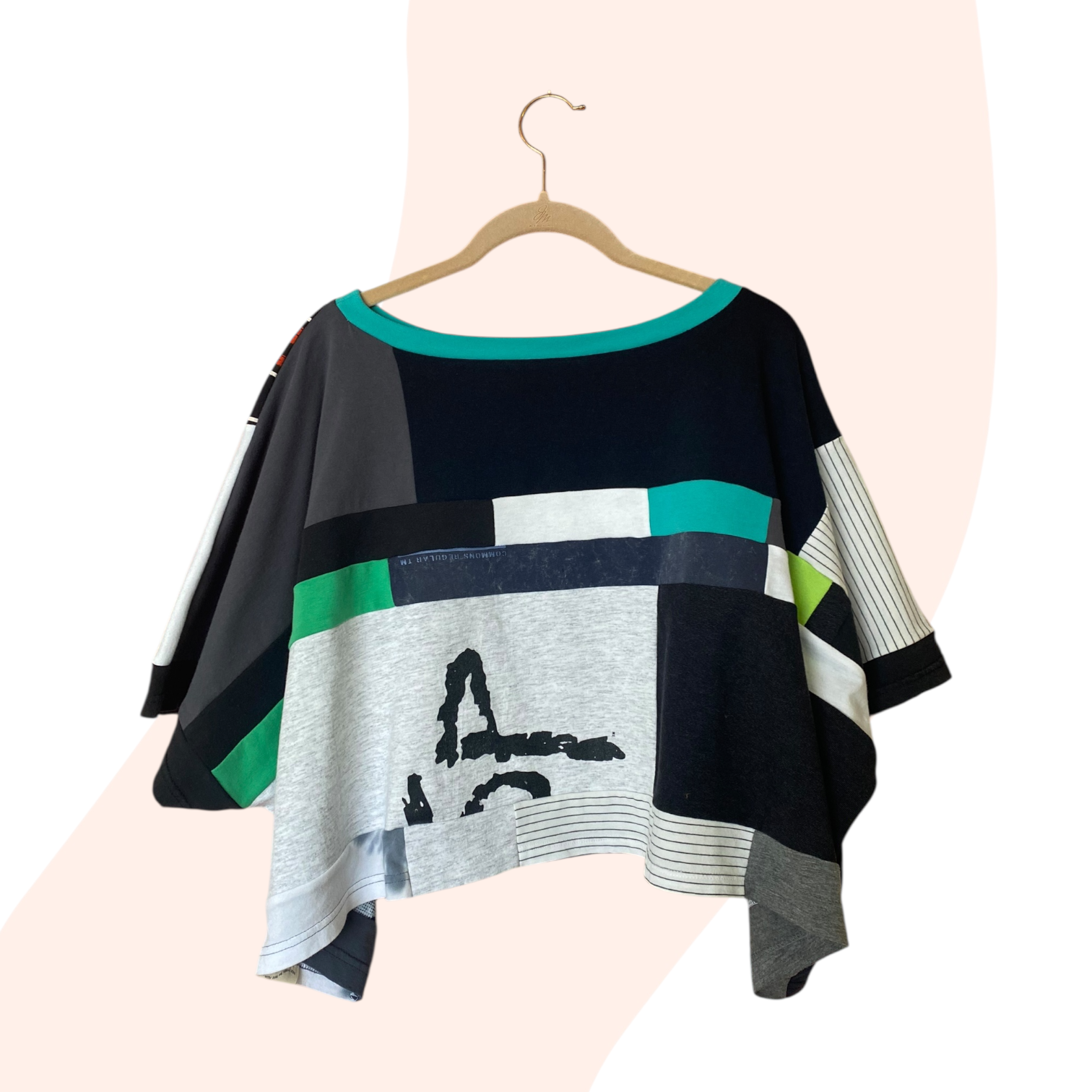 Patchwork Top #52 - Black / White / Grey / Blue / Green - Size Inclusive